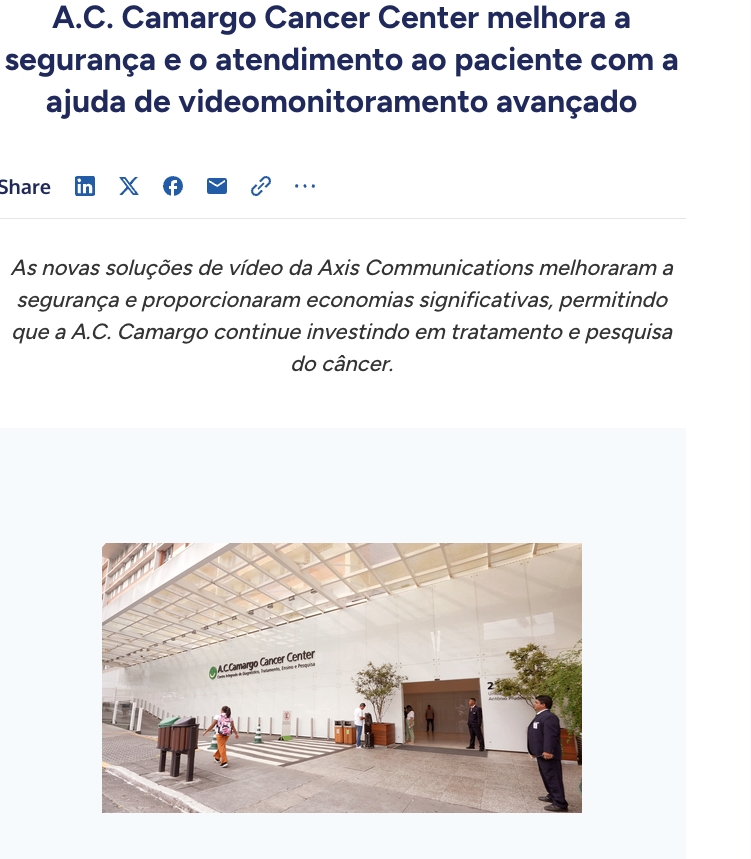 A.C. Camargo Cancer Center melhora a segurança e o atendimento ao paciente com a ajuda de videomonitoramento avançado