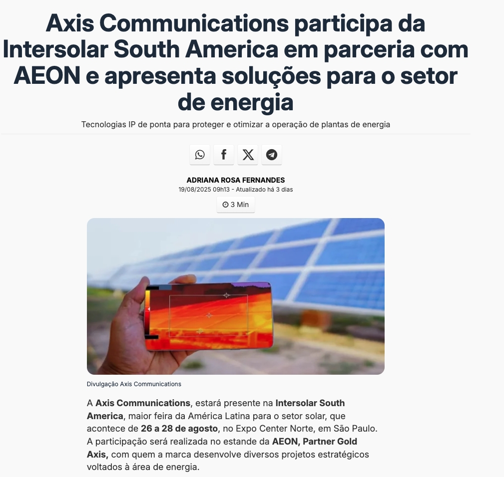 Axis Communications participa da Intersolar South America em parceria com AEON e apresenta soluções para o setor de energia