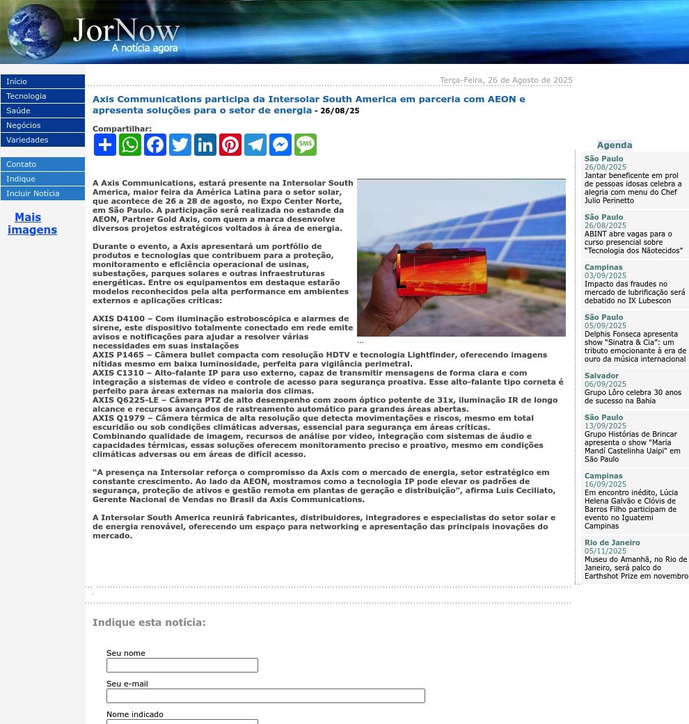 Axis Communications participa da Intersolar South America em parceria com AEON e apresenta soluções para o setor de energia