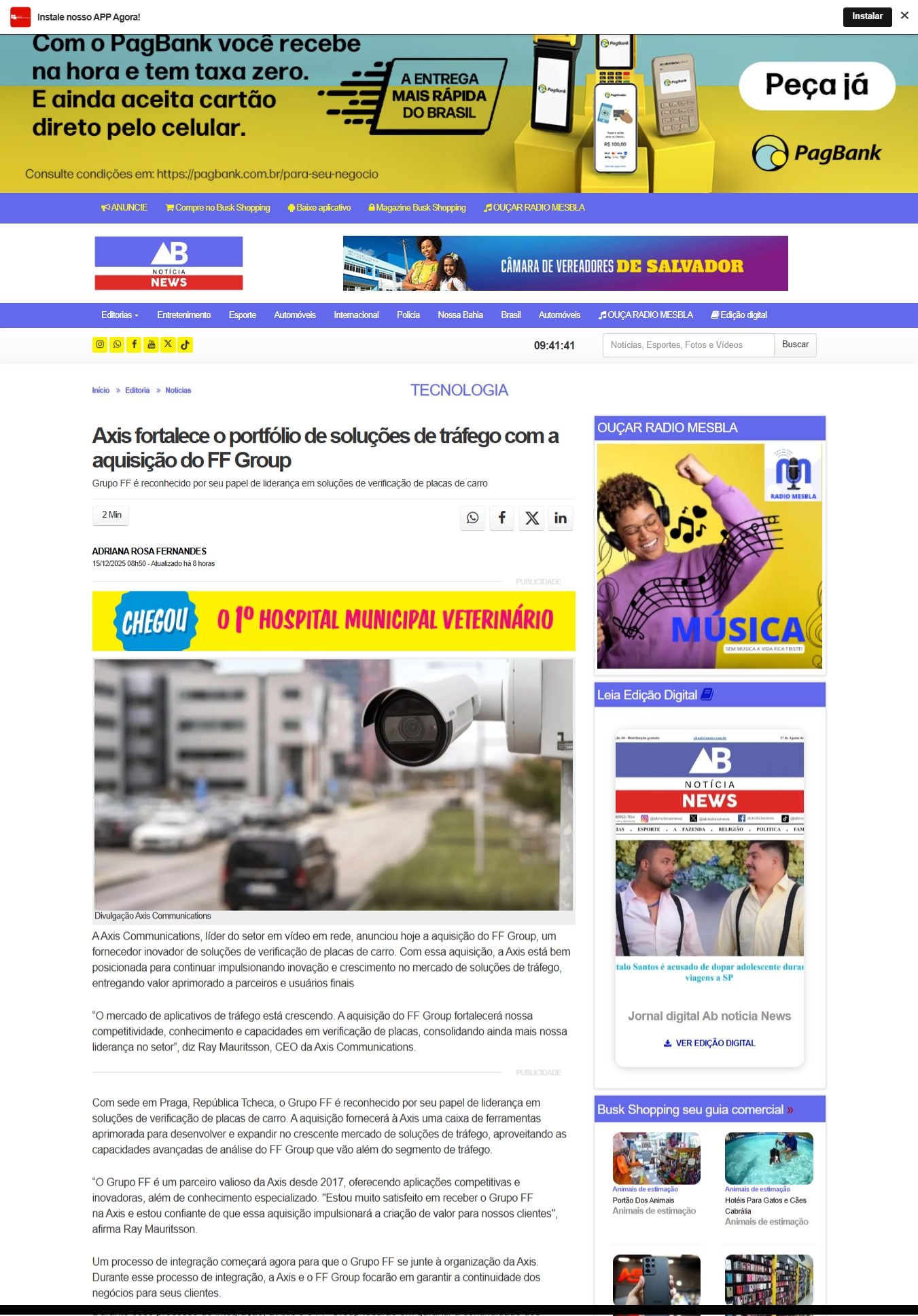 Axis fortalece o portfólio de soluções de tráfego com a aquisição do FF Group