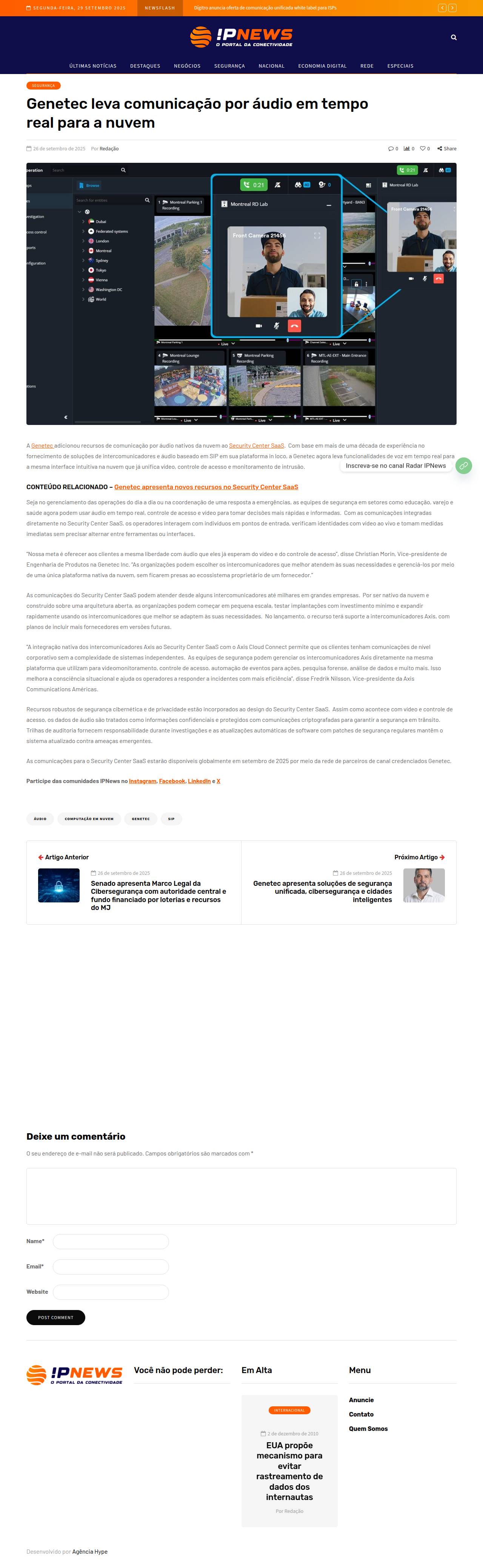 Genetec leva comunicação por áudio em tempo real para a nuvem - IPNews - O Portal da Conectividade