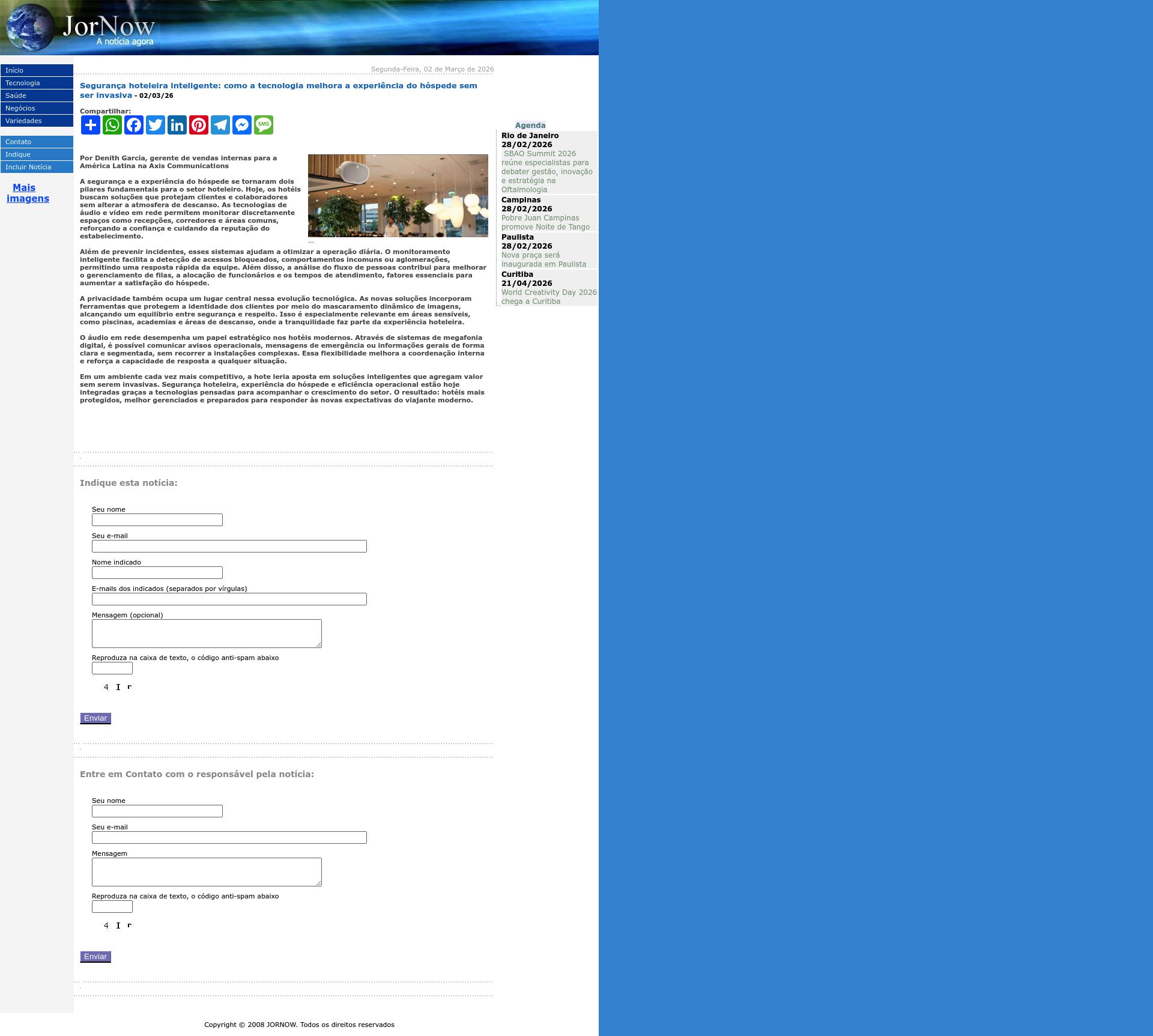 JorNow - Notícia: Segurança hoteleira inteligente: como a tecnologia melhora a experiência do hóspede sem ser invasiva