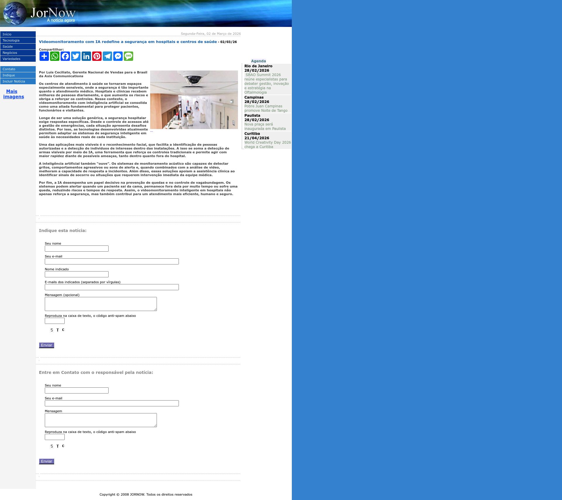 JorNow - Notícia: Videomonitoramento com IA redefine a segurança em hospitais e centros de saúde