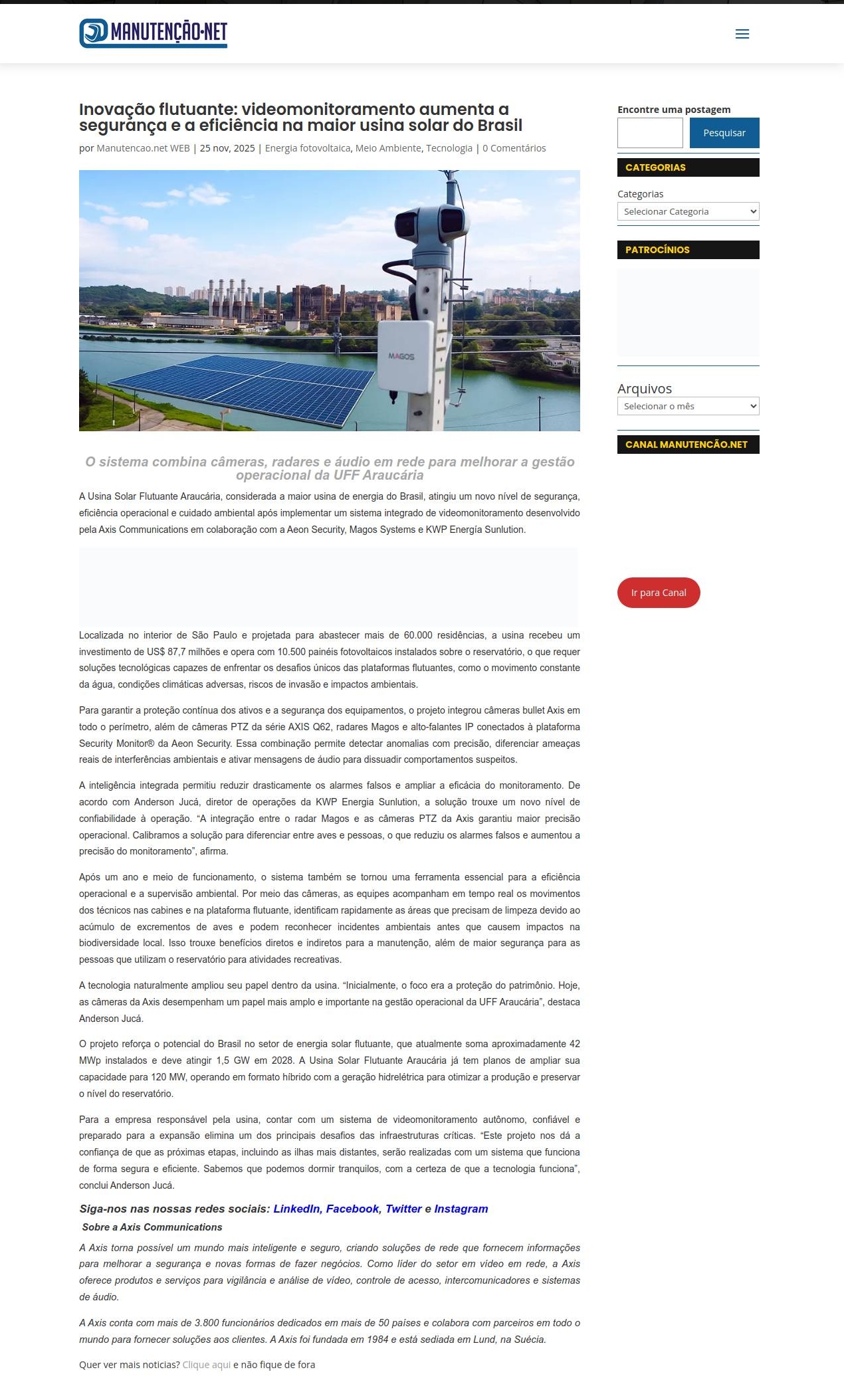 https://manutencao.net/inovacao-flutuante-videomonitoramento-aumenta-a-seguranca-e-a-eficiencia-na-maior-usina-solar-do-brasil